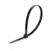 Хомут нейлоновый (кабельная стяжка) 100х2,5 мм чёрный REXANT предназначен для крепления или обвязки в жгут кабелей и проводов, крепления гибких гофротруб, а также других предметов к несущей поверхности или для соединения между собой. Такая стяжка используется при проведении электромонтажных работ, при монтаже структурированных кабельных систем, для бытовых нужд, а также в других отраслях народного хозяйства. Представляет собой гибкую полоску из нейлона высокой прочности (полиамид-6,6) с замком на конце. Полиамид-6,6 — кристаллизующийся конструкционный материал, имеющий высокую твердость и механическую прочность, отличающийся высокими электроизоляционными свойствами. Простой и удобный монтаж осуществляется вручную следующим образом: большим пальцем левой руки прижать замок к пучку, а правой рукой затягивайте петлю, либо с помощью специального инструмента REXANT арт.12-4521 или 12-4541 (вставить конец затяжки в замок и затянуть до полной фиксации пучка, после чего отрезать выступающую часть бандажа). Не рекомендуется перегибать бандаж при затяжке. Хомуты нейлоновые гарантируют качество, оперативность и экономичность профессионального электромонтажа, обеспечив максимально надежную фиксацию предметов. Основные характеристики: - длина и ширина: 100х2,5 мм - диаметр охвата (максимальный): 22 мм - максимальная рабочая нагрузка: 8 кг - прочность при растяжении: не менее 50 МПа - модуль упругости при растяжении: 8000-11000 МПа - высокое сопротивление к основаниям, маслам, смазочным материалам, хлоридным растворителям - класс воспламеняемости: UL 94 класс V-2 (самозатухающий) - не содержит галогенов - тип: неразъемные, одноразового использования - температурный диапазон использования: –35...+85 ? - количество в упаковке: 100 шт. - цвет: чёрный